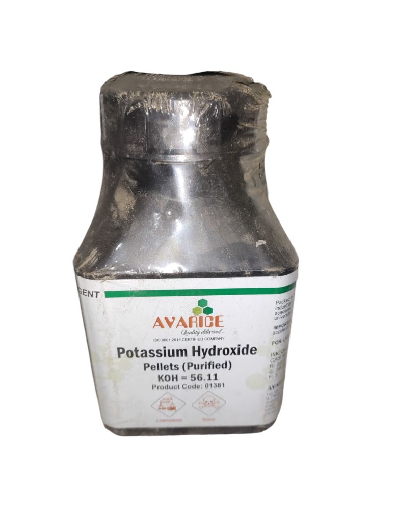 AVARICE Potassium Hydroxide Pellets 500gm Assay (Acidimetric) 85.0% CAS NO 1310-58-3